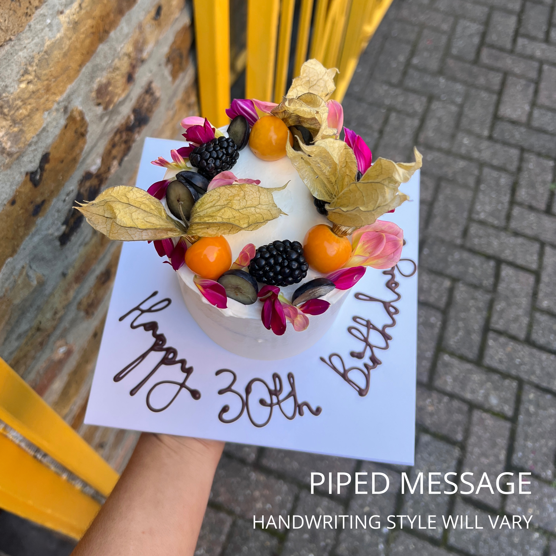 Delivery: I had this delivered inside London and the process was smooth. The day before I was sent a tracking code for my one hour time slot. Through this on the day I could see when the courier had collected the cake, the estimated time to drop off, and a little icon on the map of where exactly the courier was. Therefore no anxious waiting for the doorbell.